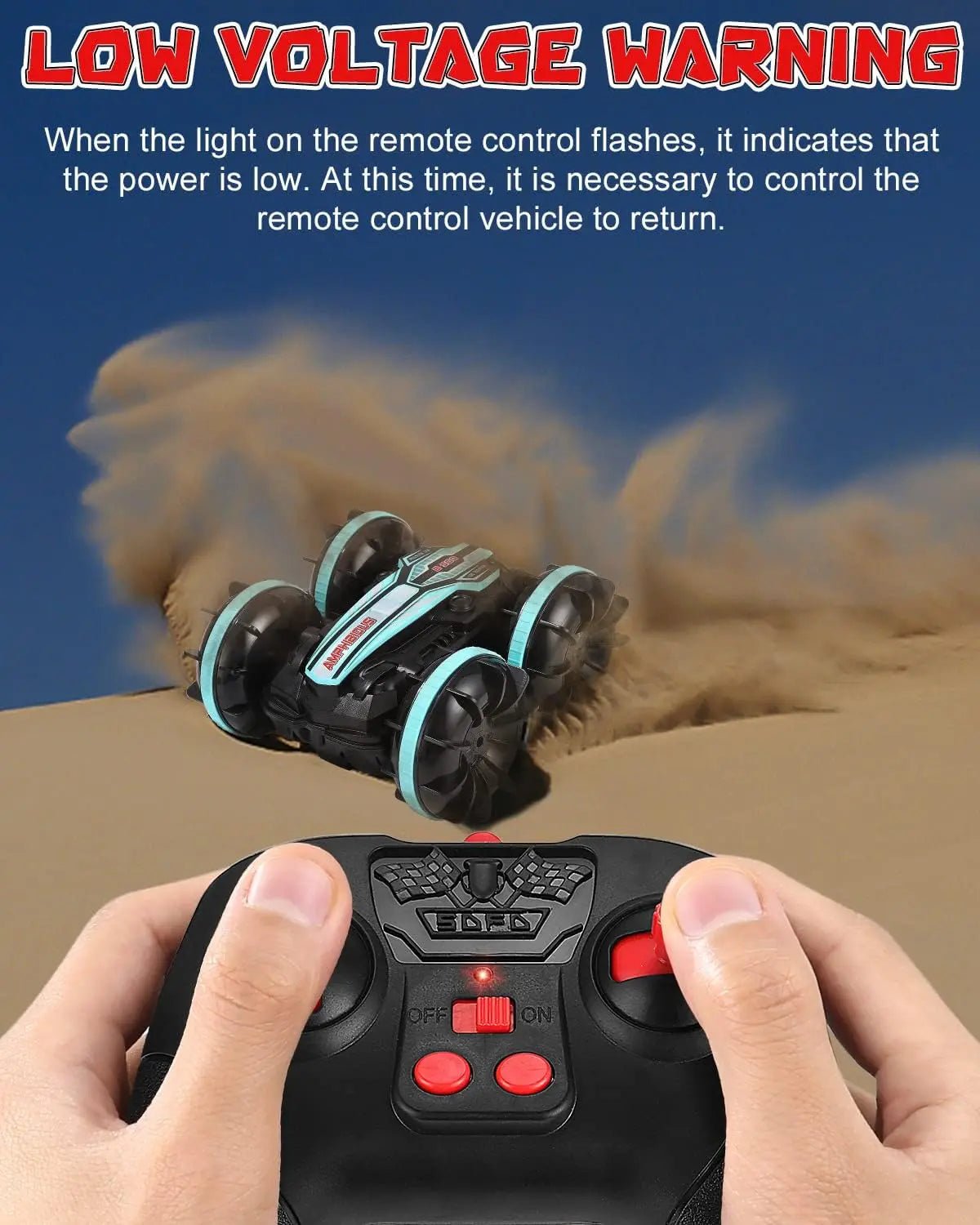 Amphibious Remote Control: This remote control vehicle can control it on land, beach, park and water. Don't worry. Don't worry about obstacles. He will quickly tilt or rotate.