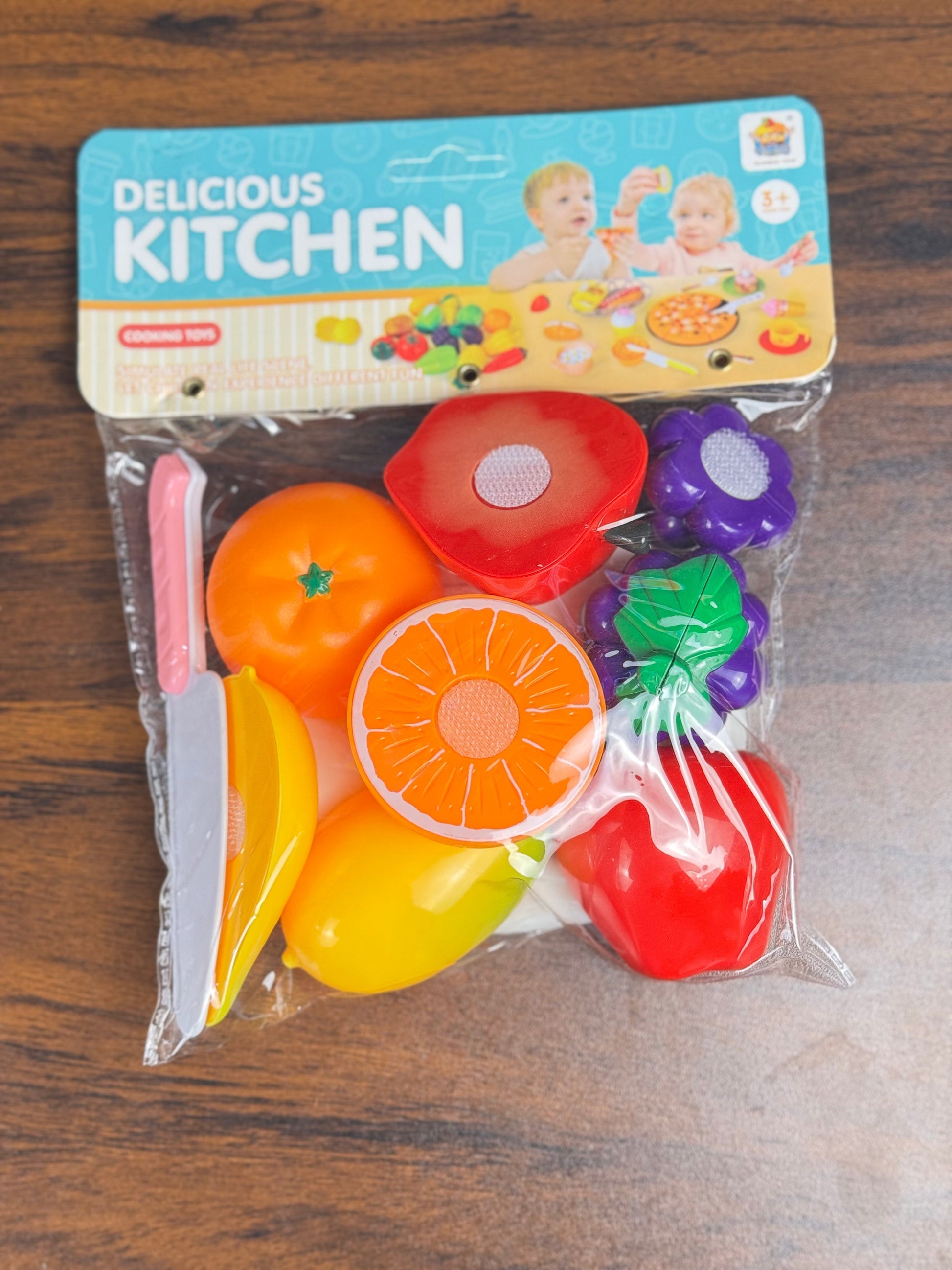 ✅ Realistic Design – Food cutting set with vibrant colors as shown